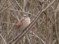 林縁でカチカチ騒いでいるのはモズ。冬の間も単独で活動します。群れをつくってチョコチョコ動き回ってるのは、ホオジロやカラの仲間たち。